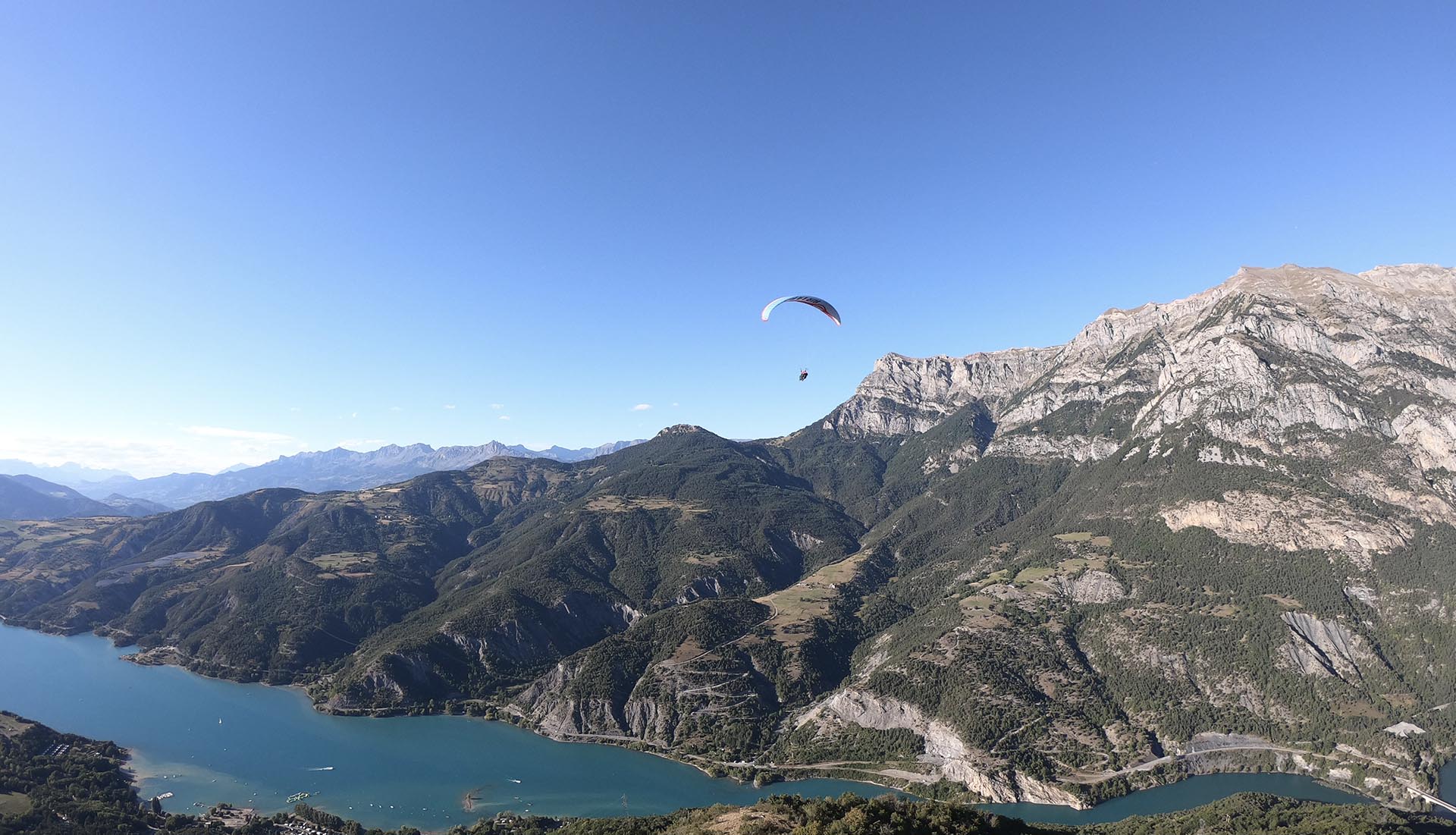 Aux Ailes Du Lac, nous proposons des vols en biplace parapente respectueux de l’environnement ! Comment ? Nous avons choisi d’utiliser les courants ascensionnels plutôt qu’une navette de transport. La piste de décollage se trouve à seulement 50 mètres de l’aire d’atterrissage, ce qui nous permet de réaliser tous nos vols depuis Saint Vincent-les-Forts. Nous prenons notre envol depuis le village et profitons des ascendances au-dessus du lac de Serre-Ponçon, offrant une vue imprenable sur les montagnes des Hautes-Alpes. Nous revenons ensuite nous poser au même endroit, sans avoir utilisé de carburant avant ou après l’activité. Cette particularité nous permet de garantir nos temps de vols et de réduire notre empreinte carbone et de proposer une expérience éco-responsable à nos clients.