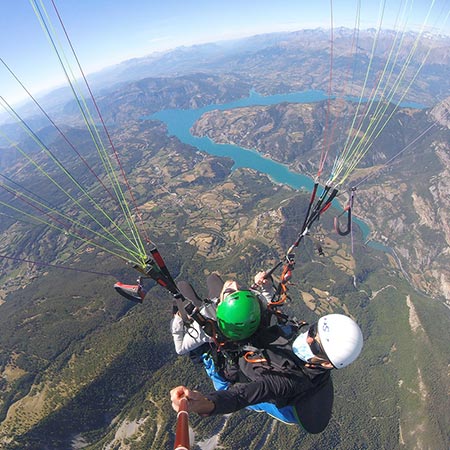 Vous souhaitez voler en parapente ? Le lac de Serre-Ponçon dans les Hautes Alpes est l’endroit idéal pour votre baptême de l’air. Nous volons tous les jours du moment que la météo nous le permet. Prenez un rendez-vous grâce a la vente en ligne ci-dessus (nous remboursons votre achat si le vol n’a pas lieu pour des raisons de météo/aérologie).